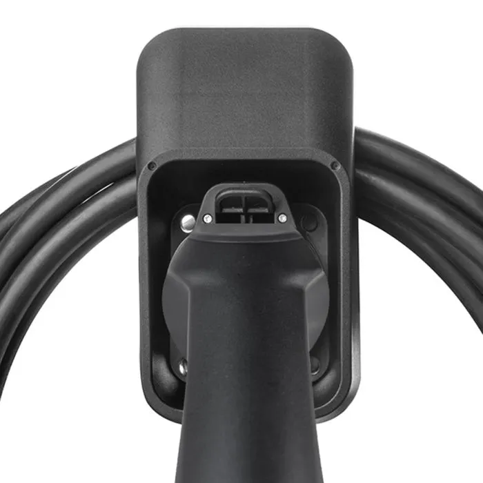 Een nette en stijlvolle opbergoplossing voor type 2 EV-laadkabels. Beschermt de stekker tegen regen.